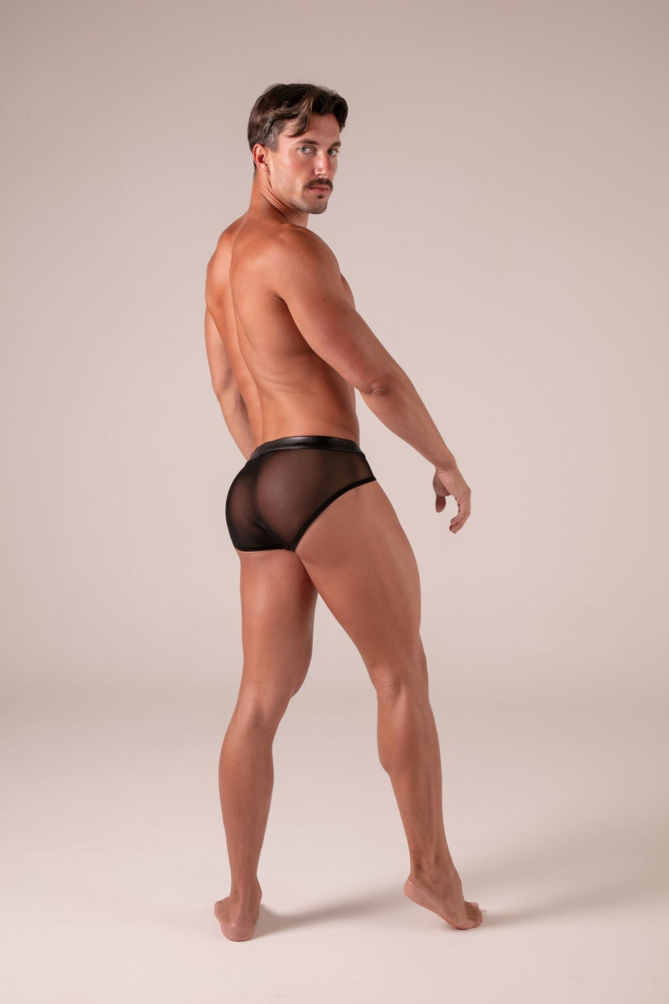 Absolu Male Rebel Zipped briefs are the perfect piece for daring men who like to be the centre of attention. The combination of black leatherette on the front and transparent mesh on the sides creates a strong visual contrast that attracts attention and emphasises masculine lines.