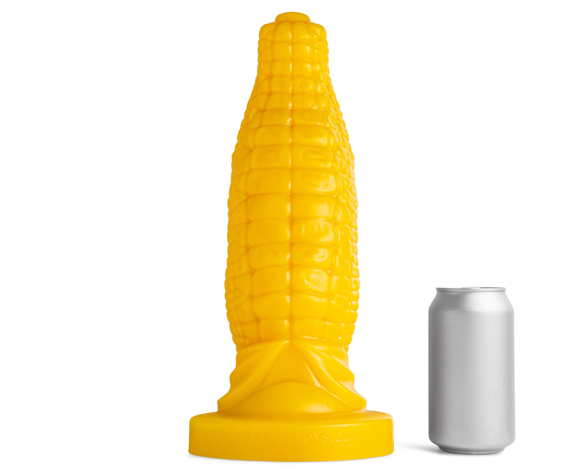 A corn dildo full of bumps that won't just make you drool. Made in the USA from the finest soft platinum silicone. Size XXXL, 75 % soft, golden yellow colour, Vac-U-Lock compatible. Total length 34.5 cm, insertable length 28.7 cm, diameter 7.6–11.6 cm. More Information