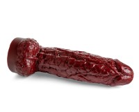 Dildo with a rocky surface, pulled-back foreskin and vein details that are sure to hit the right spots! Made in the USA from the finest soft platinum silicone. Size large, 75 % soft, red colour, Vac-U-Lock compatible. Total length 29.2 cm, insertable length 23 cm, diameter 6.1–7.3 cm. More Information