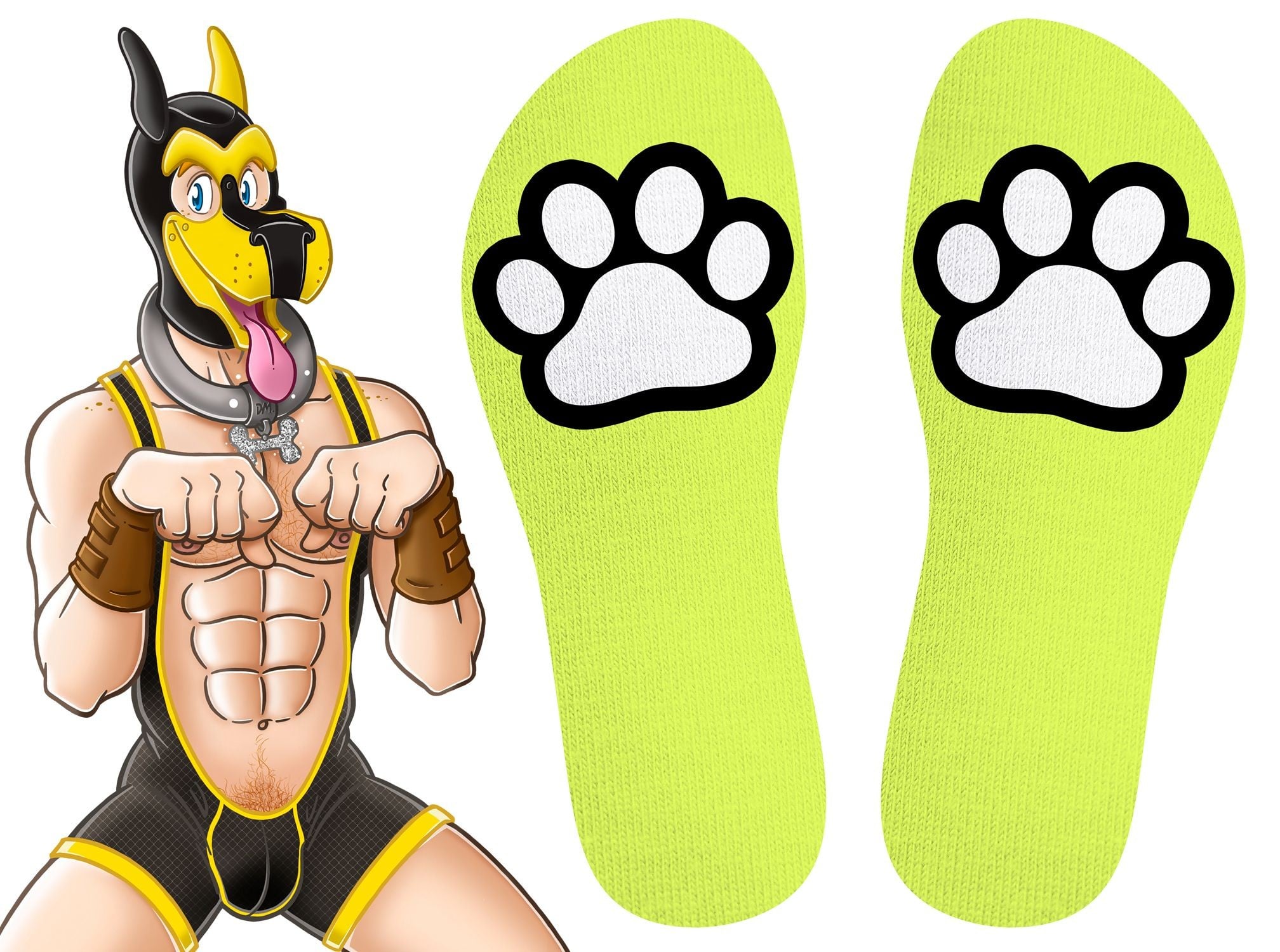 Are you a cuddly and good puppy? With Kinky Puppy socks, you can easily complete your puppy outfit and tell everyone what you like. The paws on the sides and soles directly invite you to walk or train a new trick, and the soft lining keeps your feet comfortable in every situation and position – a real treat for your feet.