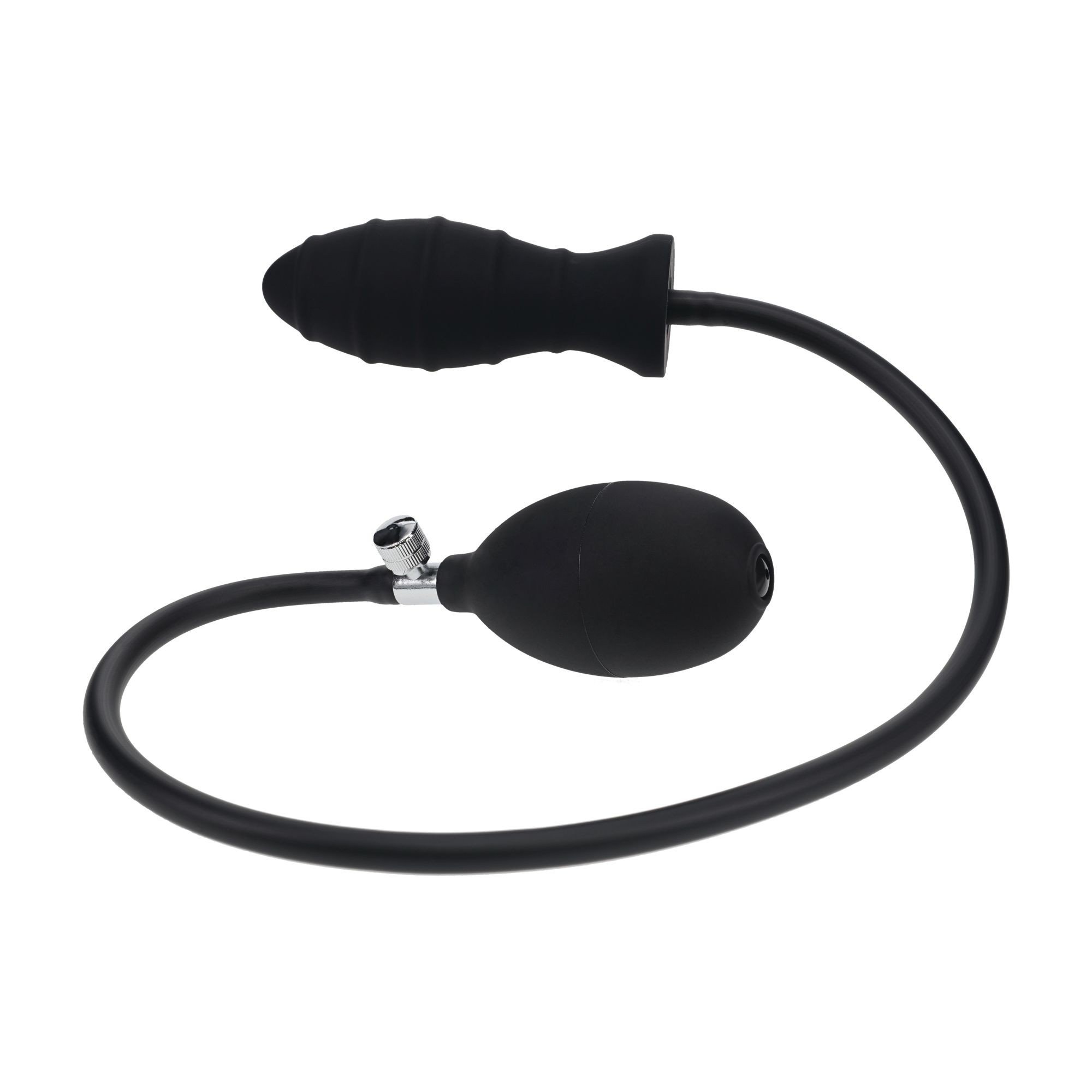 Anal plug with ribbed surface and pump for gradual inflation. Made of soft and flexible silicone. The pumping balloon is equipped with a valve for pressure regulation. Plug length 10 cm, diameter of uninflated plug 3.8 cm. More Information