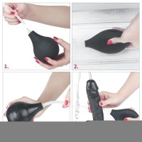 Black flexible squirting dildo with a suction cup and a large balloon for the wettest fun. It has a distinctive glans and realistic veining. Made of phthalate-free PVC. Dimensions: total length 25.5 cm (without suction cup), insertable length 21.5 cm, diameter 4.4–5 cm. More Information