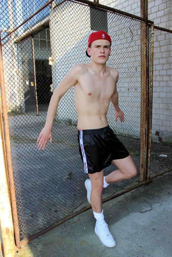 The black shiny look of Sk8erboy shorts is simply awesome! These shorts with a white stripe on each side and a button on the front will ensure your comfort during wearing, sex, but also piss. Their soft shiny material will make you rockhard and you will also fall in love with them during water sports. In combination with the white Sk8erboy socks and your favourite cap, you will also be irresistible to every lover of sk8/sports gear. Material: 97 % polyester, 3 % spandex.