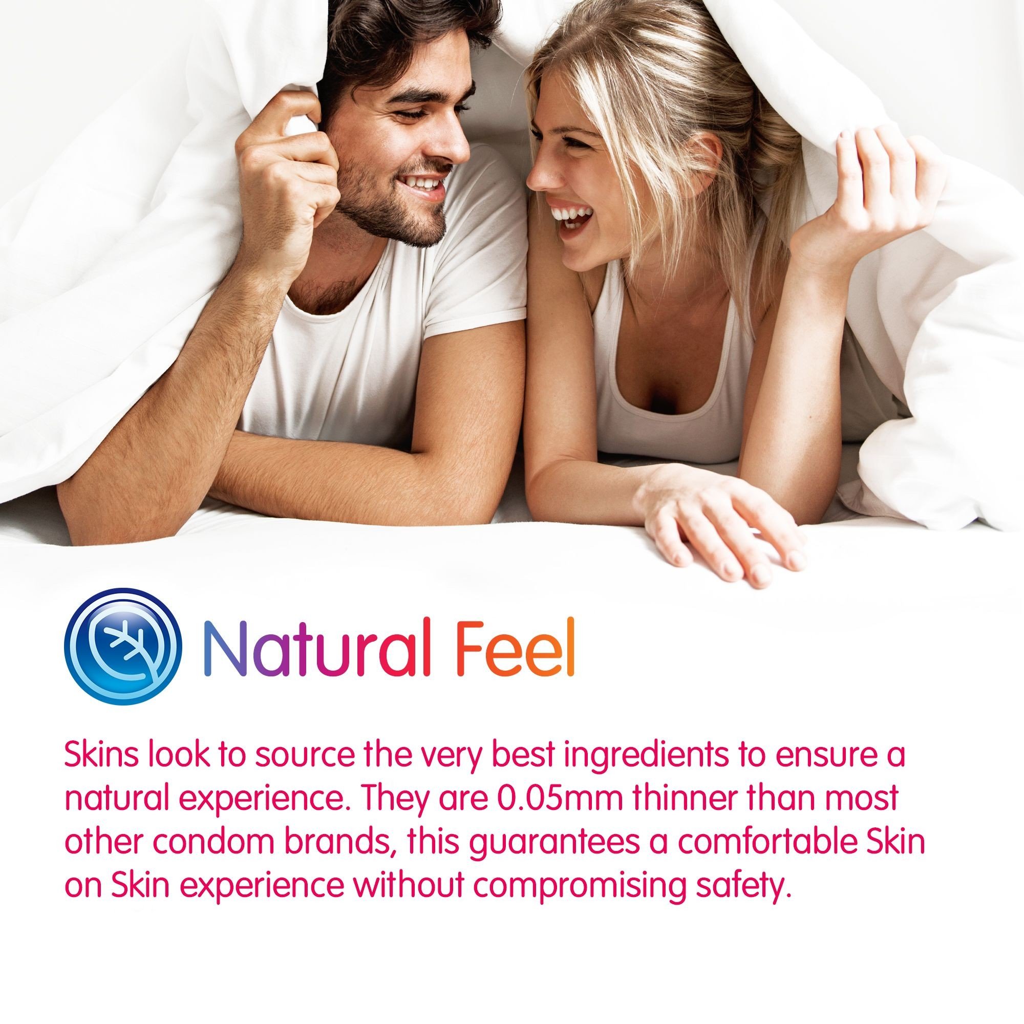 - 2x Skins Natural – Classic Skins condoms, which are 0.05 mm thinner than regular condoms on the market. Nominal width 52 mm, length 190 mm.