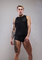 Black mesh Sukrew tank top with rounded neckline. Partly see-through and breathable. Material: 84 % polyamide, 16 % elastane. More Information