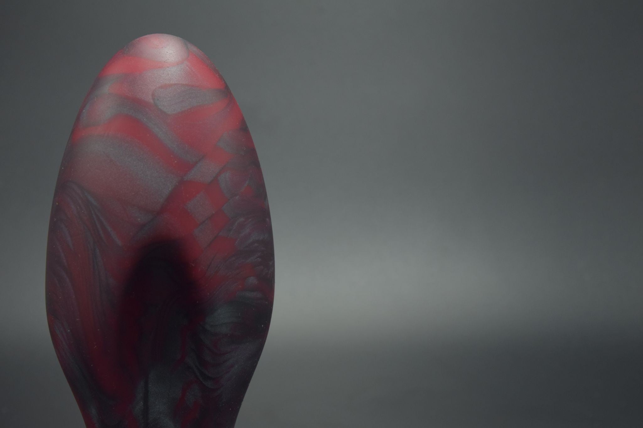 Anal plug with special groove for double penetration. Made of super soft and flexible platinum silicone. Marbled red-grey colour. Dimensions (approx.): total length 16.5 cm, insertable length 14.7 cm, diameter 6.9 cm. More Information