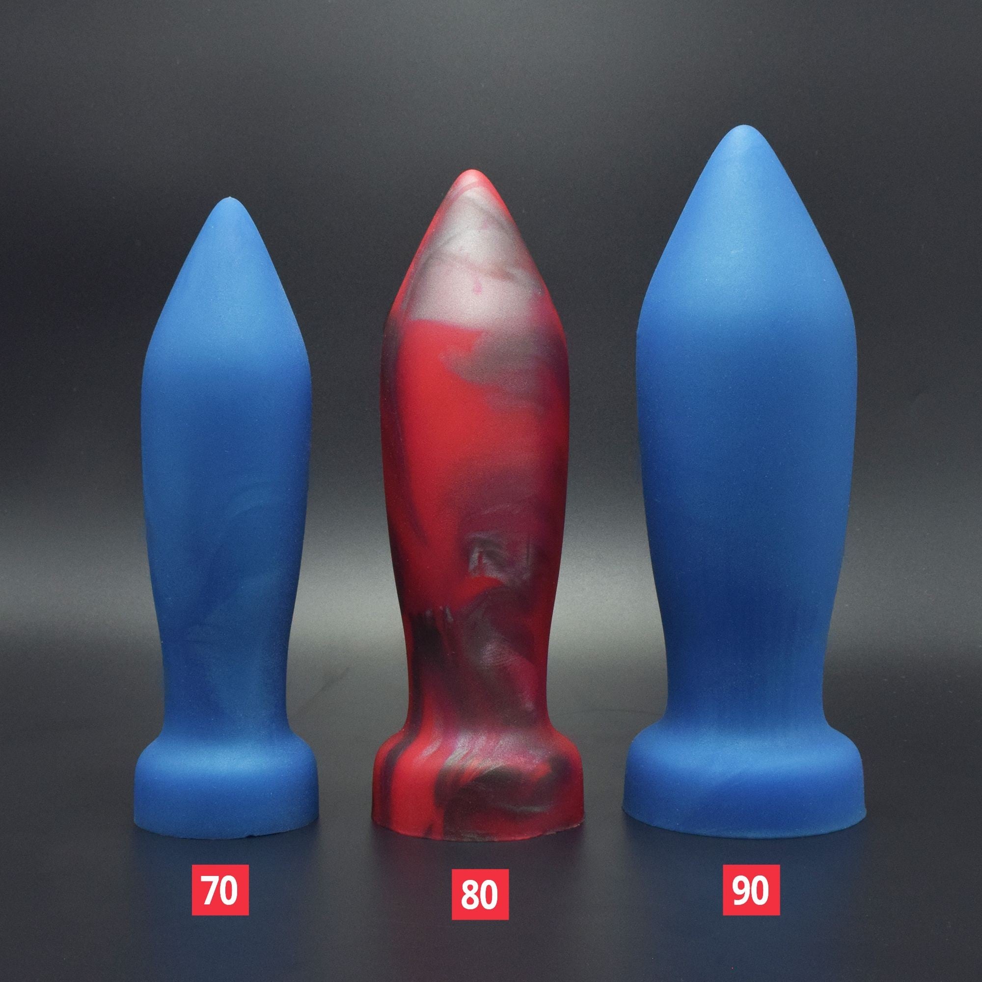 Did you want it deeper? The Deep Space series of plugs go in wide and stays wide all the way to the neck. With a tall shape which tapers slightly towards the shaft, it’s perfect for squatting over and riding up and down. Its width will hit you deeper, and the shaft will drag your lips out. With a less dramatic taper, you’ll probably have to practice to hold this plug inside. Holding it depends on your ability to relax your deeper muscles consciously – or, in other words, to make Deep Space inside you, just as this plug is designed to do. Incredibly soft and flexible platinum silicone conforms to your body and movements for unparalleled comfort and full stretch. The plugs are available in various sizes, so you can gradually work your way up to larger pieces. Can you handle them all?