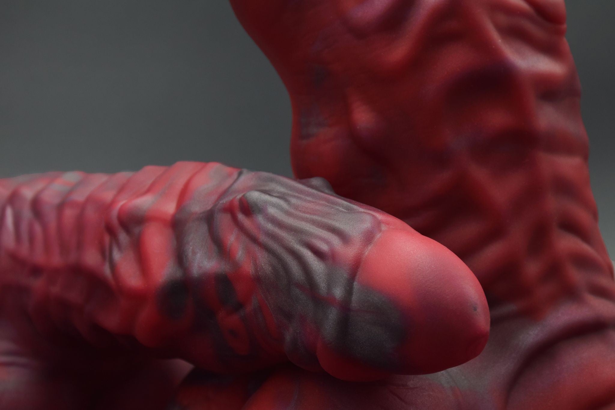 Fantasy anal dildo with a significant stimulation structure and a noticeable widening in its centre. Special HD Finish, which makes the plug matte and slightly textured, improving the adhesion of lubricant and multiplying the experience of each movement of the toy. Made of super soft and flexible platinum silicone. Marbled red-grey colour. Dimensions (approx.): total length 29 cm, insertable length 24.1 cm, diameter 8.5 cm. More Information