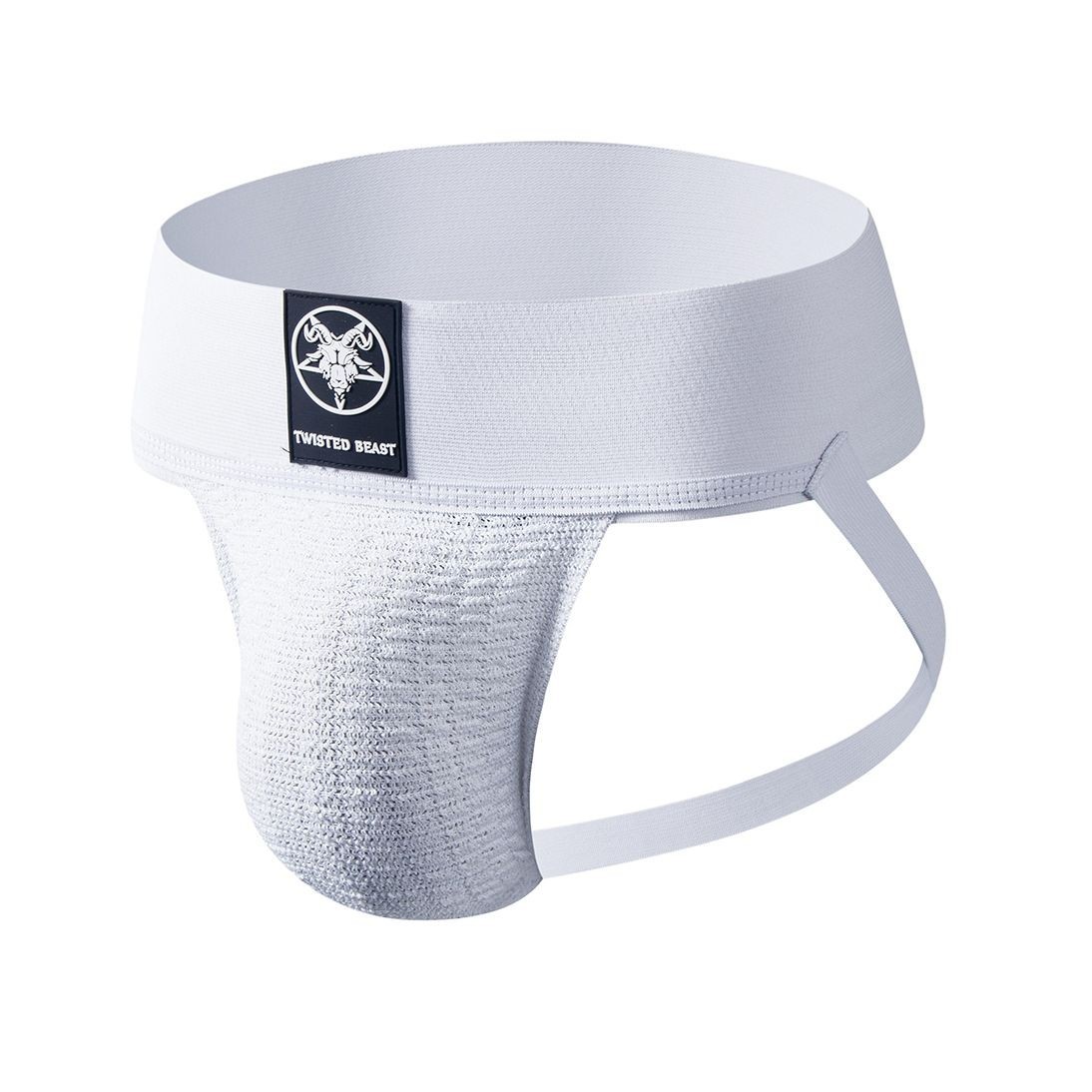 Wite jock with silicone Twisted Beast logo on the wide waistband. 96 % polyester, 4 % spandex. More Information